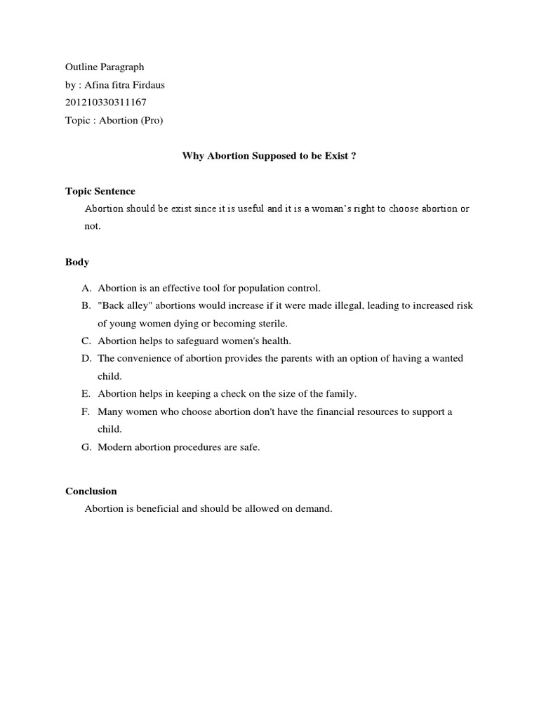Outline Paragraph Abortion Pro Abortion Pregnancy